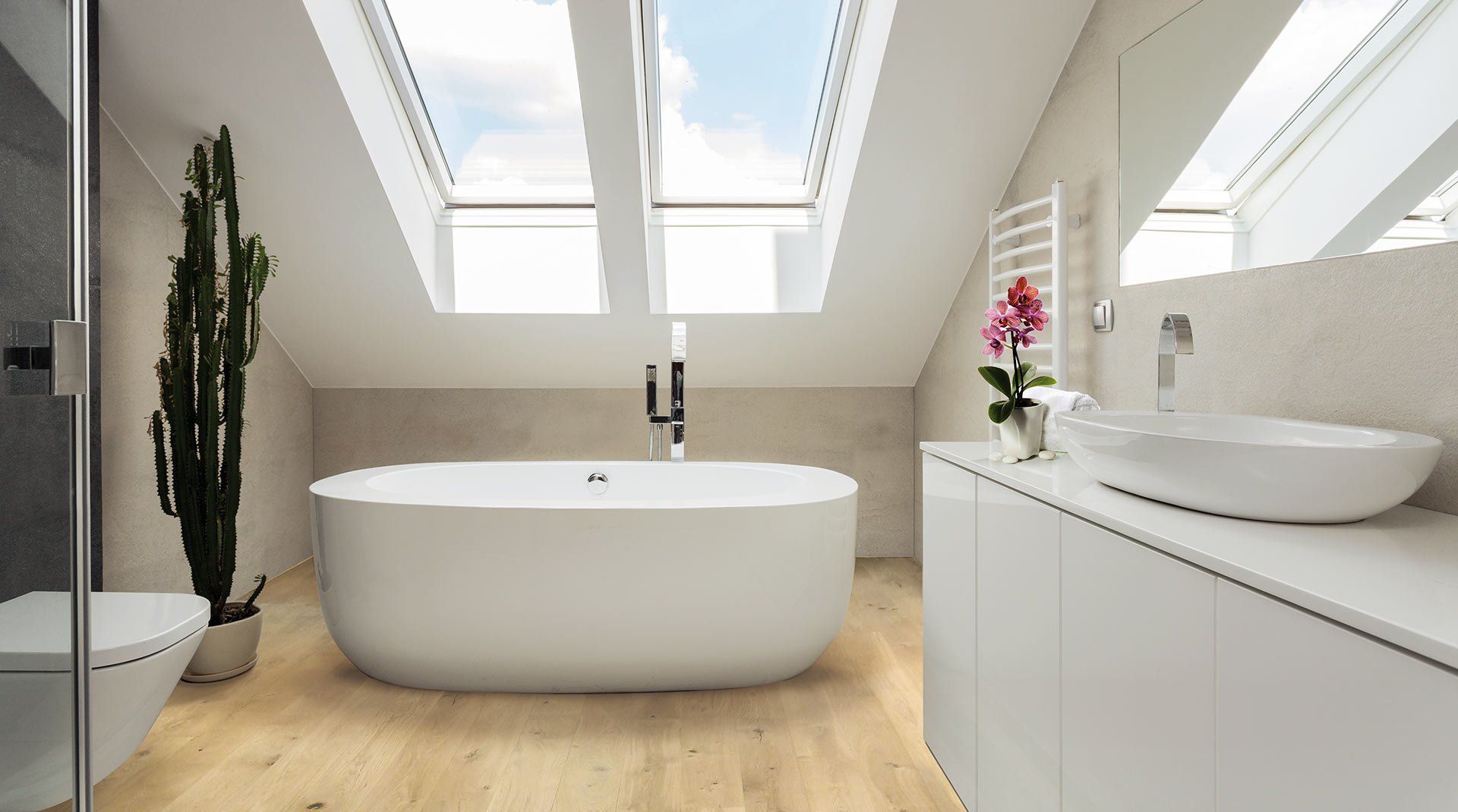 אנו מלווים אתכם מהרעיון ל"רגע שלכם "בחדר הרחצה החלומי החדש. יחד נפתח נווה מדבר של רווחה מחדר האמבטיה הסטנדרטי שלכם וניצור מקום לרגיעה ולבילוי. לקבלת קונספט כולל אחיד, האלמנטים האיכותיים הרבים מותאמים זה לזה בצורה אופטימלית על מנת להישאר נאמנים לסגנון חדר האמבטיה החלומי שלכם. אתם בוחרים את הבית המתאים לכם מהסגנונות השונים ואנחנו יוצרים את חדר הרחצה החלומי שלכם בכיתה משל עצמו.